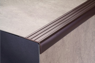 Profili in PVC con funzione di protezione, definizione e/o rifinitura degli spigoli dei gradini, già posati, in ceramica, marmo, pietra, legno, moquette, etc. Disponibili in differenti colori, con superficie liscia o zigrinata, presentano buone caratteristiche antiscivolo rispondendo alle più svariate necessità estetiche e d’impiego. Sono particolarmente indicati in situazioni ove la superficie del pavimento risulti scivolosa; sono idonei anche nelle situazioni ove venga richiesta la messa a norma in ambienti di pubblico esercizio.