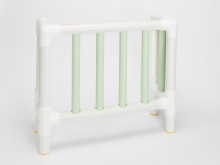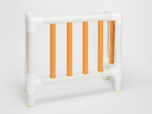 Protezione di sicurezza modello Safety per caloriferi, realizzato su misura, permette una perfetta protezione dei corpi pericolosi in attuazione delle disposizioni e delle norme in materia di sicurezza 81/08 certificato classe 1 (uno) di reazione al fuoco. La struttura in PVC completamente arrotondata atta a garantire sicurezza e protezione antiurto, totale assenza di spigoli progettato per proteggere i bambini da urti accidentali contro i termosifoni. Le barre verticali che compongono la struttura sono di diametro mm 33 ed inserite nei fori del tubo portante mantenendo una distanza tra i tubi verticali di cm. 6,7 migliorativa rispetto alla norma UNI 10809 par. 3.3 inattraversabilità. La struttura prevede (ogni max cm 60) un tubolare del diam. 42 mm completo di piedino che rende il copricalorifero maggiormente stabile e solido.