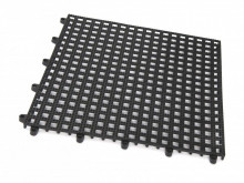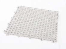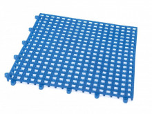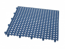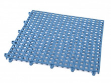 Piastrella "AQUA FLOOR" in Pvc perfetta per ambienti e superfici a contatto con acqua e liquidi in genere evitando il pericolo di scivolare come ad esempio spogliatoi, piscine,industrie,officine,barche,canili,lidi balneari e terrazze. La sua superficie forata la rende autodrenante. Il piano sollevato da terra consente il passaggio dei liquidi attraverso i fori e lo scorrimento sotto la superficie, eliminando il rischio di scivolare. Le connessioni a bottone su due lati consentono una posa facile,senza colle o adesivi. La sua flessibilità permette di arrotolarla montata come se fosse un unico tappeto rendendo possibile la pulizia del pavimento sottostante. Confortevole al contatto e i suoi rilievi oltre a renderla antiscivolo sono stati studiati per offrire una piacevole sensazione di massaggio plantare.