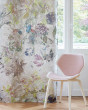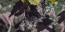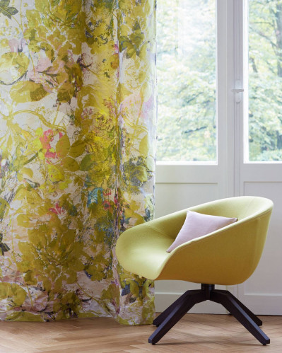 Usando una tecnica elaborata, le formazioni di fioritura che si disperdono vengono stampate sull'ordito prima della tessitura. Il disegno stampato e i successivi fiori intrecciati entrano in un intrigante legame.