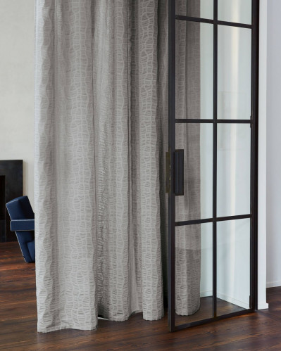 Una rete come una griglia unisce gli strati di questa doppia trama. La luce in arrivo accentua il legame e rende più visibile. Nel mezzo - gli strati trasparenti si muovono liberamente formando una superficie morbida e voluminosa.