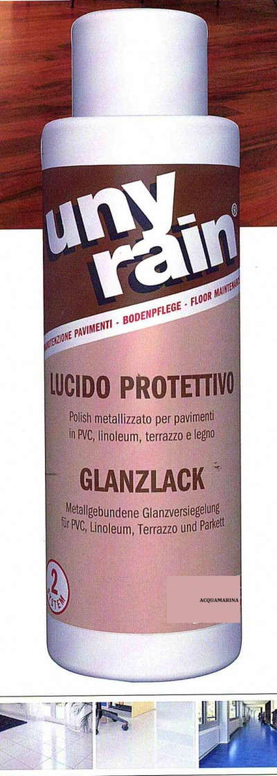 Emulsione polimerica metallizzata per tutti i pavimenti in PVC, gomma, linoleum, marmo, parquet e alla veneziana sottoposti a forte usura.