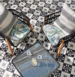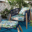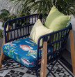 Le piante da serra e da interno forniscono ispirazione per questa collezione di tessuti stampati e intrecci coordinati. I tessuti sono resistenti alle macchie e alle muffe e hanno un'ottima solidità alla luce, che li rende adatti all'uso esterno. La tavolozza dei colori comprende giallo sole, turchese, terracotta, verde mela, nero e lino, offrendo opzioni per bordo piscina, giardini, terrazze e interni soleggiati.