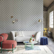 Colore: Carta da parati con stampa a piastrelle in Denim & Rosso su Gesso