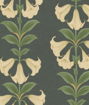 Colore: Carta da parati floreale in Crema e Verde Oliva su Carbone di Legna