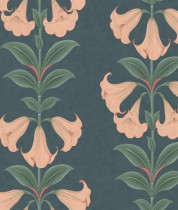 Colore: Carta da parati floreale in Coral & Viridian on Ink