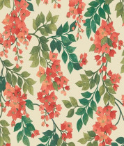 Colore: Carta da parati floreale in Fucsia , Rosso e Oro Metallizzato su Crema