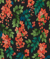 Colore: Carta da parati floreale in Rosso & Verde Foglia su Nero