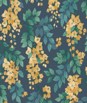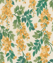 Colore: Carta da parati floreale in Calendula, Verde Foglia e Smeraldo su Pergamena