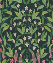 Colore: Carta da parati floreale in Rosa e Verde Bosco su Pergamena