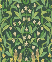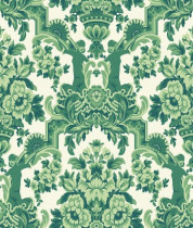 Colore: Carta da parati tradizionale in Verde Foresta su Bianco