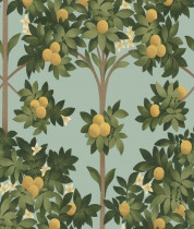 Colore: Carta da parati fogliame in Limone & Verde Oliva Scuro su Duck Egg