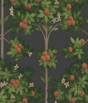 Colore: Carta da parati floreale in Ciliegia, Mandarino Scuro e Oro Metallizzato su Nero