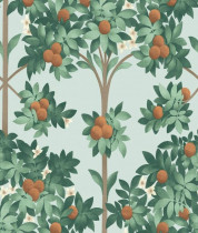 Colore: Carta da parati fogliame in Arancione e Verde Primaverile su Pergamena