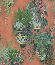 Colore: Carta da parati floreale in Rosa e Verde primaverile su Terracotta