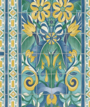 Colore: Carta da parati con stampa a piastrelle in Giallo Canarino e Blu Cina su Verde Acqua