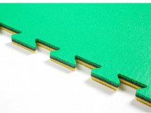 Pavimentazione bicolore reversibile a puzzle cm 100x100 spessore mm 15, realizzata con schiuma ignifuga CL1 e a norma EN 71-1 / EN 71-2 / EN 71-3 e marcatura CE "GIOCATTOLI DESTINATI A BAMBINI DI ETA’ INFERIORE A 36 MESI", accoppiata con un mix di densità che la rende ammortizzante ed ideale per aree interne adibite al gioco, al fitness, alle attività motorie e psicomotorie.