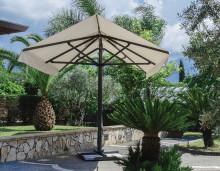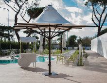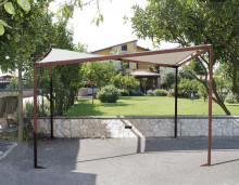 Ombrelloni fissi e articolati di ogni forma geometrica regolare o irregolare e dimensione, tendocoperture, coperture per superfici commerciali esterne, per alberghi, ristoranti, bar, discoteche, parcheggi e altre particolari necessità di tipo residenziale con strutture in metallo (alluminio, acciaio) o con grigliati in legno e fioriere (tunnel, gazebi con teli laterali e senza, patio, pagode, box, porticati, pensiline, copri porte e copri cancello, pergolati).