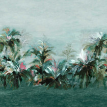 Alberi: Immergiti in una giungla paradisiaca tra foglie tropicali di grandi dimensioni in una combinazione di colori rilassanti. I colori ad olio conferiscono un meraviglioso aspetto materico a questo espressivo pannello di carta da parati, che misura 3 x 2,7 m.