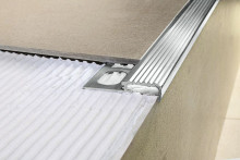 Profili in alluminio ed ottone, per la realizzazione e protezione in fase di posa di gradini in ceramica, marmo e pietra. Inoltre grazie alla superficie di pedata zigrinata, risultano conformi alla norma DIN 51131 in materia di gradini antiscivolo.