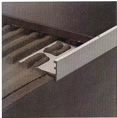 Profili in alluminio ed ottone per la realizzazione e protezione in fase di posa di gradini in ceramica, marmo e pietra.