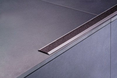 Profili in alluminio anodizzato con funzione di protezione, definizione e/o rifinitura degli spigoli dei gradini, già posati in ceramica, marmo, pietra, legno, moquette, etc.