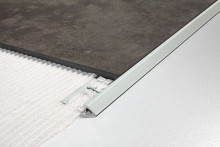 Una linea di profili terminali in alluminio anodizzato, la cui sezione inclinata, studiata appositamente per raccordare le differenze di livello nella posa fra pavimenti di uguale o differente natura, ne permette l’eliminazione del gradino causato dal differente spessore del pavimento.