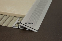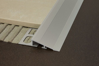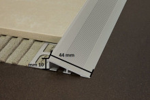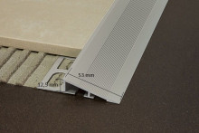 Profilo di raccordo tra due pavimentazioni soggette a sollecitazioni. La moderata inclinazione rende più agevole il passaggio di carrelli o sedie a rotelle.