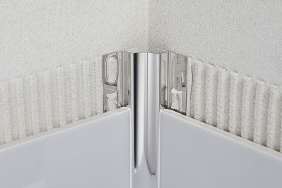 Profilo di raccordo in acciaio da utilizzarsi nelle situazioni in cui è richiesta una particolare tutela del livello igienico (ad esempio: in studi medici, industrie alimentari, piscine, centri benessere, cucine industriali, ospedali ecc.).