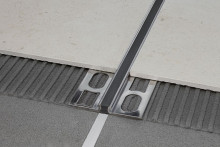 Giunto di dilatazione per posa a colla con sezione interna in EPDM vulcanizzato. La struttura in metallo resiste agevolmente al passaggio frequente pedonale e veicolare.