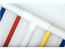 Protezione di sicurezza modello Safety per caloriferi, realizzato su misura, permette una perfetta protezione dei corpi pericolosi in attuazione delle disposizioni e delle norme in materia di sicurezza 81/08 certificato classe 1 (uno) di reazione al fuoco. La struttura in PVC completamente arrotondata atta a garantire sicurezza e protezione antiurto, totale assenza di spigoli progettato per proteggere i bambini da urti accidentali contro i termosifoni. Le barre verticali che compongono la struttura sono di diametro mm 33 ed inserite nei fori del tubo portante mantenendo una distanza tra i tubi verticali di cm. 6,7 migliorativa rispetto alla norma UNI 10809 par. 3.3 inattraversabilità. La struttura prevede (ogni max cm 60) un tubolare del diam. 42 mm completo di piedino che rende il copricalorifero maggiormente stabile e solido.