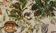 Una fantastica stampa faunistica - stampata digitalmente su tessuto soft touch con un supporto non tessuto - in cui ciascuno dei 10 animali estinti è misteriosamente nascosto.