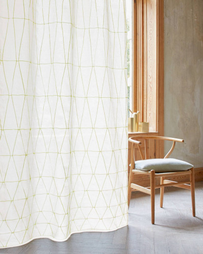 Pieghe in filigrana cucite formano linee tridimensionali che convergono in un motivo a diamante. Il design presenta linee lineari che attraversano il tessuto come se stessero seguendo linee disegnate a mano.