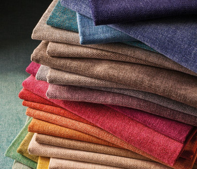 Una ciniglia bicolore semi-unita in colori accesi come mandarino, corallo, lampone, menta, limone, azzurro e turchese è presentata anche nei toni neutri del lino, della pietra, dell'argento e del ciottolo. Eccellente abrasione Martindale (40.000).
