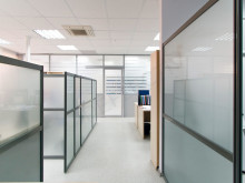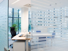 Le pellicole decorative consentono di personalizzare una finestra, un divisorio o una cabina di vetro preservando la privacy.