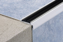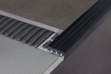 PROFILI PER SCALE ART. SIX ACCIAIO INOX SATINATO 1.4301 + ANTISCIVOLO NERO MM 25