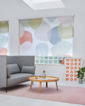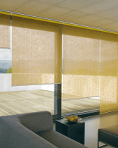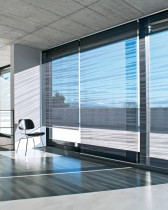 Leggi tuttoTenda a pannello e tenda a rullo in poliestere con finitura ignifuga.